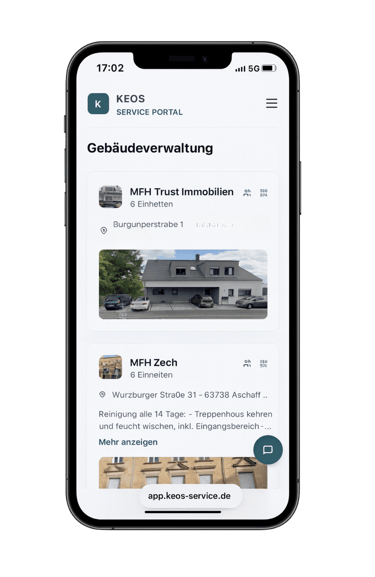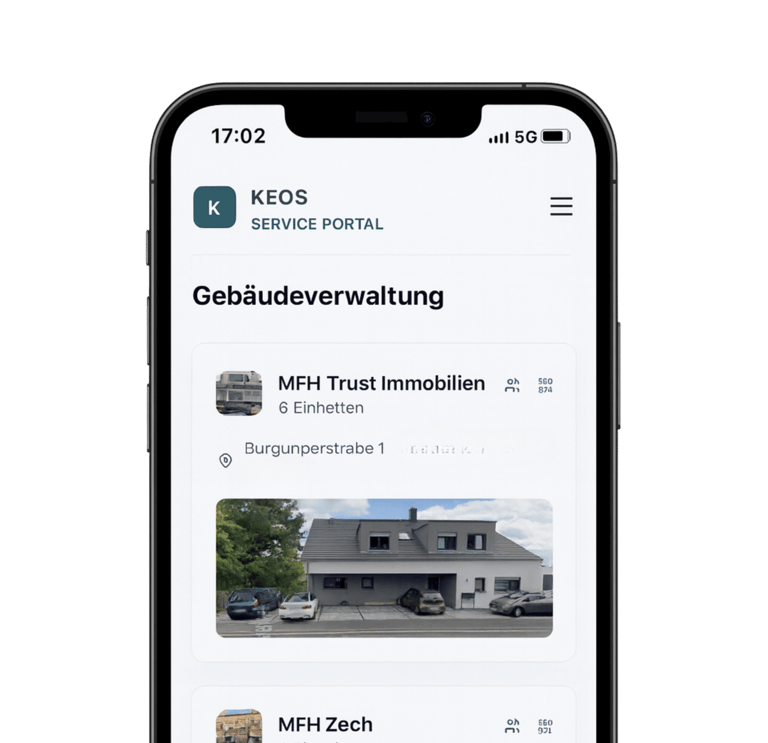 Mit der KEOS-App erhalten Hausverwaltungen und Eigentümer jederzeit Einblick in alle Leistungen – vollständig dokumentiert, mit Fotos, Berichten und Echtzeit-Updates.